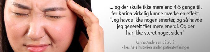 Ring til os på 4343 5010 hvis du også lider af migræne eller spændingshovedpine og vi vil i samråd med dig lave en behandlingsplan, hvor vi ved brug af akupunktur vil behandle din hovedpine og over tid få den til at forsvinde.